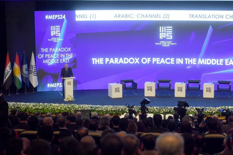 وأضاف في كلمة ألقاها اليوم الجمعة 22 تشرين الثاني 2024، خلال حضوره مؤتمر السلام والأمن في الشرق الأوسط المنعقد في الجامعة الأمريكية في دهوك: لا ينبغي أن يستمر هذا الوضع، فهذه المنطقة التي كانت منبعاً للتقدم الإنساني والحضاري والابتكار، لا يمكن أن تصبح مكاناً للقتل والدمار.