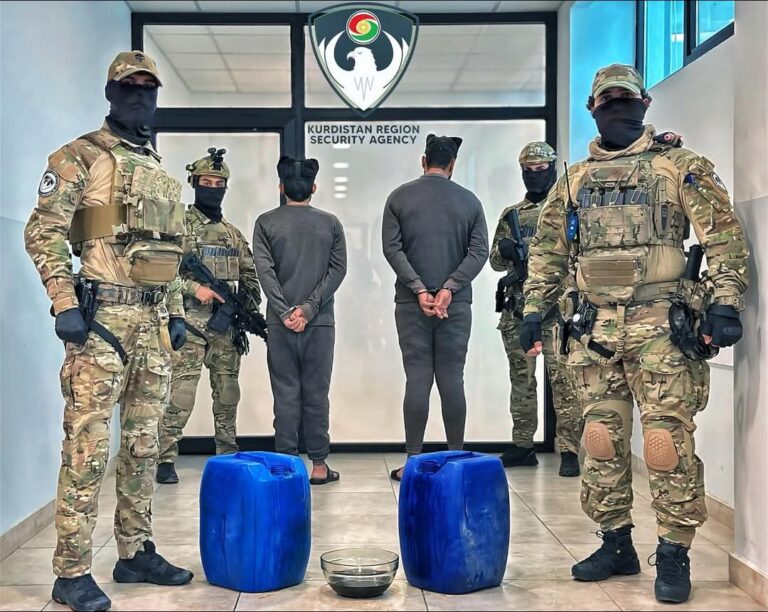 وقال في بيان ورد للمسرى إن “مفارز مديرية مكافحة المخدرات التابعة لجهاز أمن الإقليم تمكنت بالتعاون مع آسايش رابرين ضمن محافظة السليمانية، من مصادرة عبوتين تزن كل واحدة منها 35 لترا، من مادة الأسيد المخدرة”.