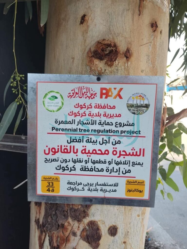 وأكدت البلدية أن هذا المشروع يأتي بالتنسيق مع منظمة الأيادي الخضراء وجمعية الأمل العراقية والأيادي الخضراء وضمن إطار القانون العراقي الذي يمنع إتلاف أو قطع الأشجار المحمية، مبينا، أن الحملة تشمل جرد الأشجار المعمرة في القاطع وتصنيفها حسب النوع والعدد، وترقيمها بأرقام فريدة مع تثبيت هذه البيانات ضمن الأرشفة الإلكترونية للدائرة البلدية.