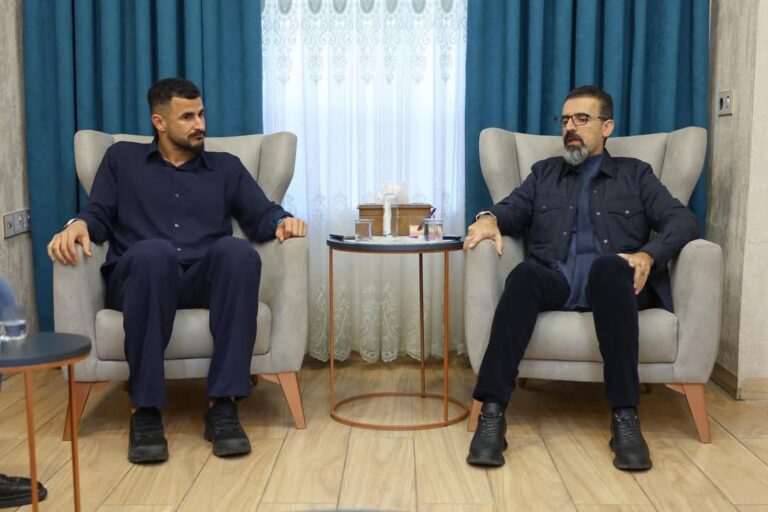 استقبل محافظ كركوك ريبوار طه، اليوم الاربعاء، لاعب المنتخب الوطني لكرة القدم ايمن حسين.
