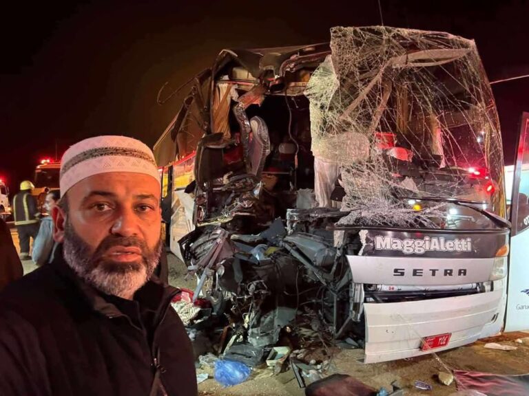 وأضافت أن “الحادث أسفر عن مصرع معتمر وإصابة 11 آخرين، اثنان منهم في حالة حرجة، كما لقي سائق الشاحنة ومرافقه مصرعهما وهما سعوديا الجنسية”،