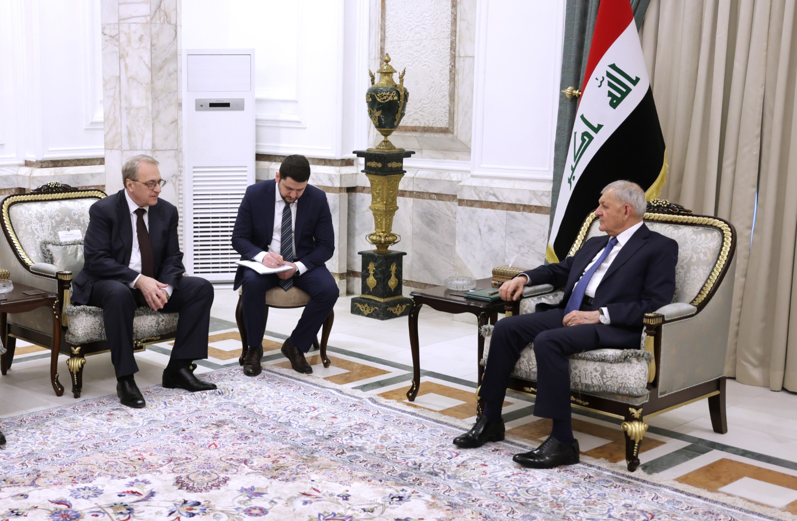 وذكر المكتب الإعلامي لرئيس الجمهورية في بيان تابعه المسرى ،ان “رئيس الجمهورية عبد اللطيف جمال رشيد، استقبل في قصر بغداد، المبعوث الخاص للرئيس الروسي إلى الشرق الأوسط وإفريقيا وكيل وزارة الخارجية الروسية ميخائيل بوغدانوف والوفد المرافق”،مبينا “بوغدانوف نقل تحيات الرئيس فلاديمير بوتين إلى رئيس الجمهورية، وحرص روسيا الاتحادية على تعزيز علاقات الصداقة والتعاون بين البلدين في مختلف المجالات”.