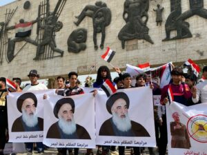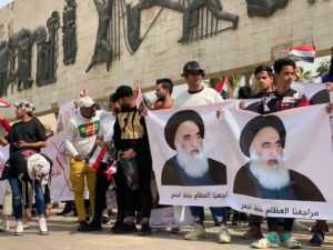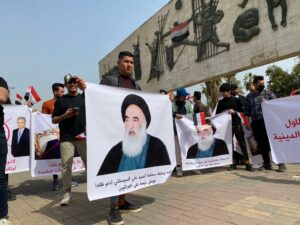تظاهر المئات من المواطنين في ساحة التحرير شرقي العاصمة بغداد ، اليوم الإربعاء ، منددين بالإساءة للمرجعية الدينية من قبل المدعو نايف كردستاني .