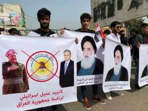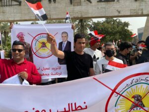 ورفض المتظاهرون رفضا قاطعا مرشح الحزب الديمقراطي ريبر أحمد لرئاسة الجمهورية ، مشددين على أن يكون منصب الرئيس لشخصية وطنية عرفت بتوازنها ومقبوليتها الجماهيرية للشعب العراقي بمختلف أطيافه ومذاهبه وتوجهاته السياسية .