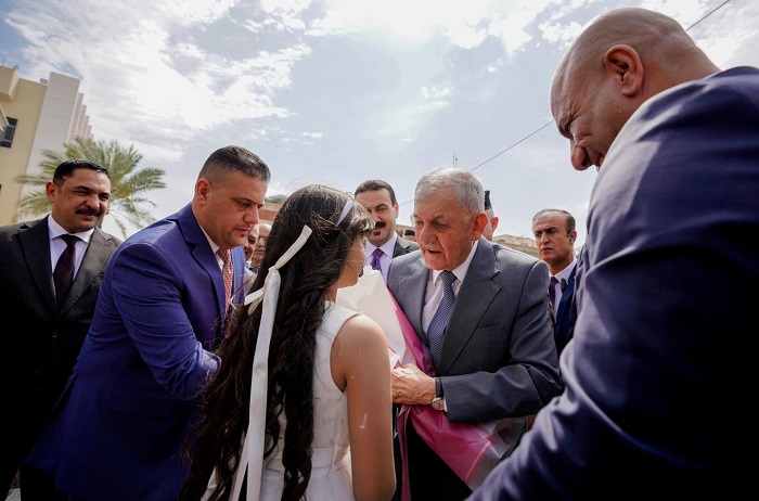 ووفق مكتبه الإعلامي” كان باستقبال رئيس الجمهورية محافظ ديالى ورئيس مجلس المحافظة ، وقائد عمليات ديالى ، وقادة الأجهزة الأمنية”.