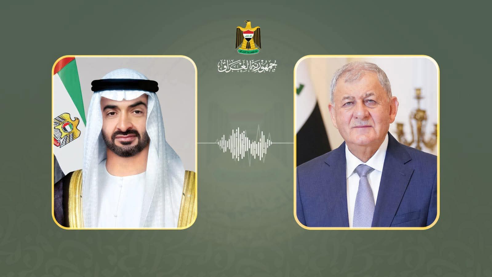 بحث رئيس الجمهورية الدكتور عبد اللطيف جمال رشيد، مع رئيس دولة الإمارات العربية المتحدة، الشيخ محمد بن زايد آل نهيان، اليوم الجمعة 27 حزيران 2025، التطورات التي تشهدها الساحة الإقليمية، وسبل تنمية العلاقات الثنائية، بما يخدم مصالح الشعبين ويعزز الأمن والاستقرار في المنطقة.