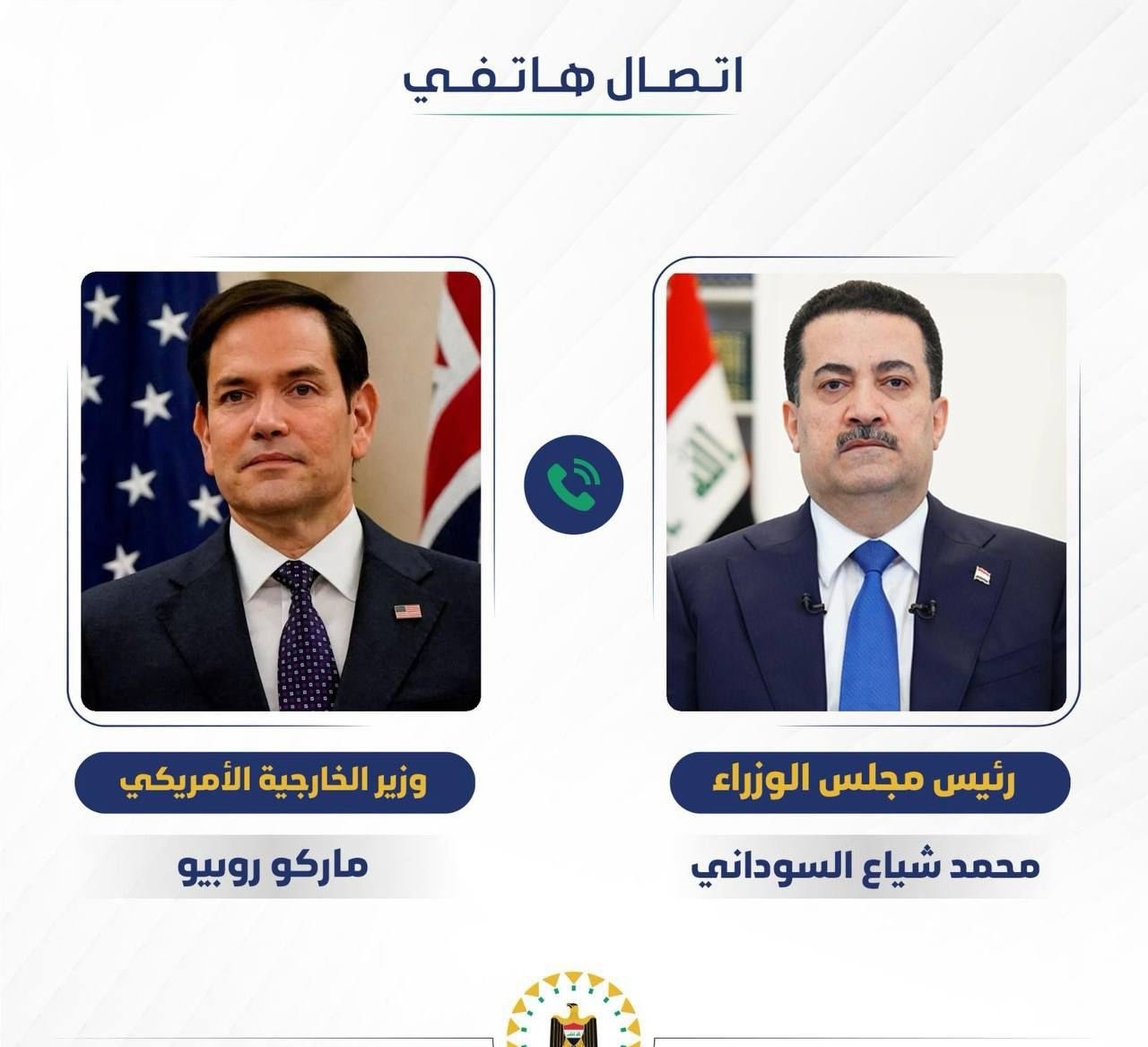 وذكر مكتب رئيس الوزراء في بيان، ان “السوداني تلقى اتصالاً هاتفياً من وزير الخارجية الأمريكي ماركو روبيو، جرى خلاله استعراض العلاقات الثنائية والأوضاع العامة في المنطقة”.