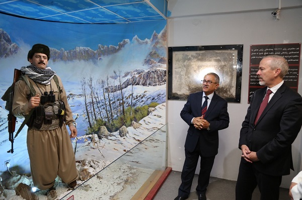 وكتب في منشور على حساب القنصيلة في موقع التواصل الإجتماعي ميتا: “كان متحف الأمن الأحمر في السليمانية مؤثرًا للغاية. شكرًا للمدير آكو غريب على إرشادي في جولة عبر معروضات المتحف، التي تُذكّرنا بوحشية نظام البعث، والتهديد العالمي الذي يُشكّله تنظيم داعش، وكفاح الشعب الكردي ضد الظلم والاستبداد.