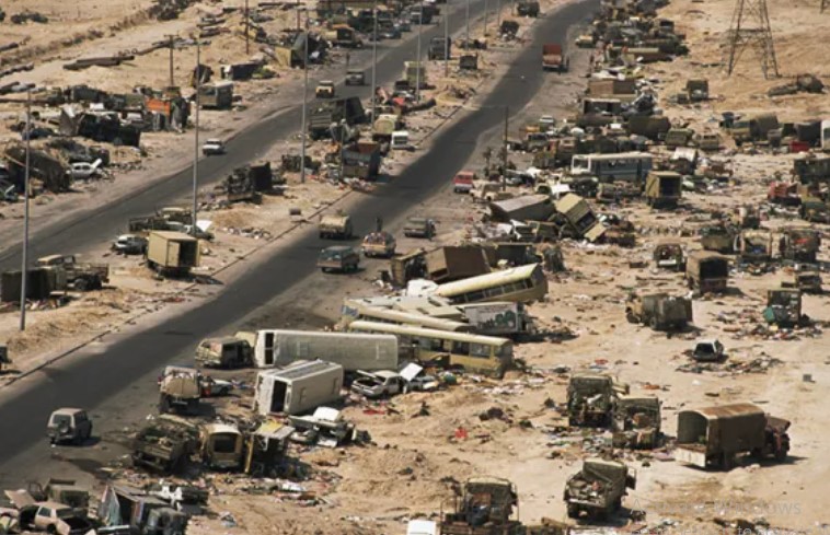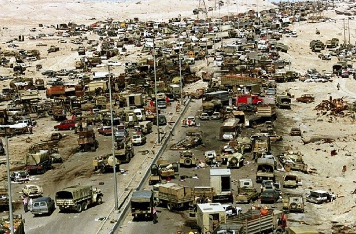 وفي 24 شباط 1991 بدأ التحالف الدولي بالهجوم البري على القوات العراقية والتي استمرت أربعة أيام، شملت الحملة قوات من 34 دولة، بما في ذلك عدد من الدول العربية، حيث حرر التحالف مدينة الكويت ودفع القوات العراقية إلى التراجع والانسحاب في 2 آذار 1991.