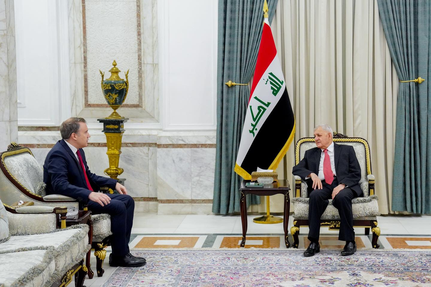 استقبل رئيس الجمهورية عبد اللطيف جمال رشيد، اليوم الأربعاء 6 آب 2025 في قصر بغداد، السفير التركي لدى العراق السيد أنيل بورا إينان.