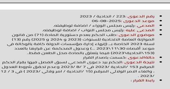 شاركها فيسبوك تويتر لينكدإن بينتيريست البريد الإلكتروني وجهت المحكمة الاتحادية، بإلغاء الأمر الولائي رقم (15 لسنة 2023)، والزمت الحكومة بإنهاء شغل المناصب بالوكالة، وإيقاف صرف المخصصات المالية وإلغاء الصلاحيات الإدارية الممنوحة لشاغلي هذه المناصب. almasra