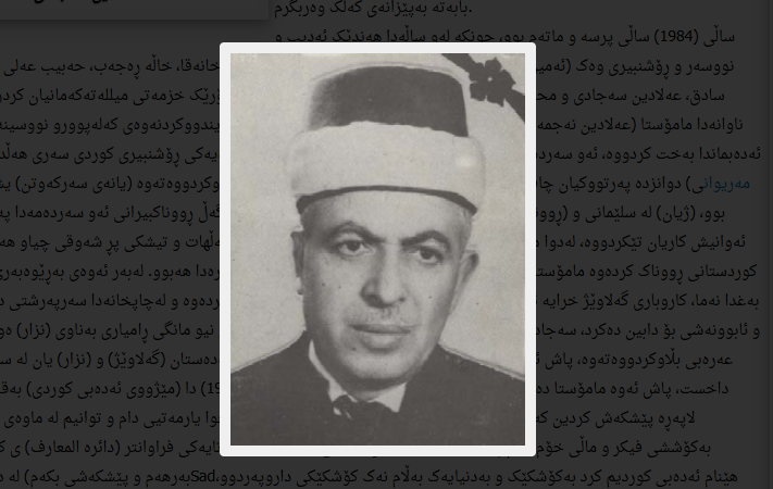 إسمه الكامل: علاء الدين نجم الدين عصام الدين سجادي ولد سنة 1907 في / سنة – سننداج /