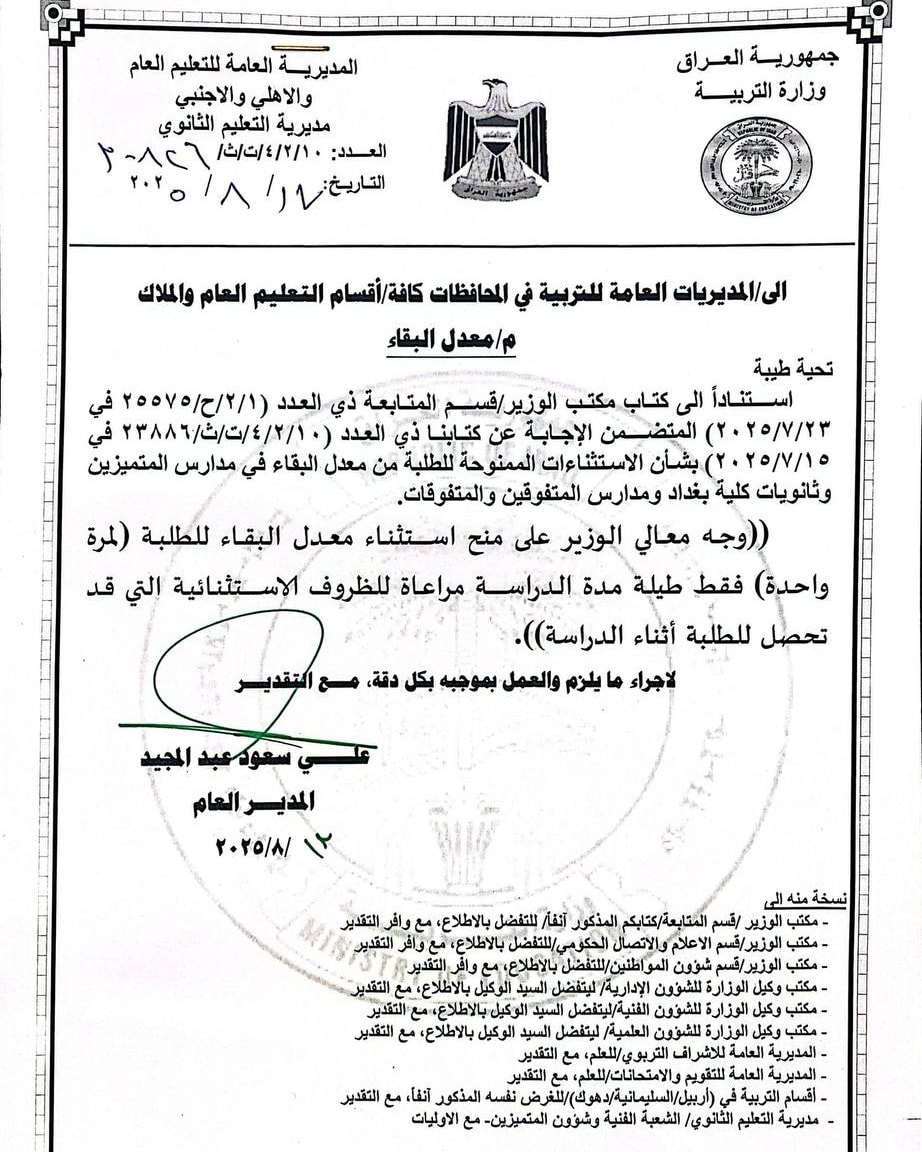 شاركها فيسبوك تويتر لينكدإن بينتيريست البريد الإلكتروني أوضحت وزارة التربية/ المديرية العامة للتعليم العام والأهلي والأجنبي أن منح الاستثناء من معدل البقاء للطلبة في مدارس المتميزين والمتفوقين يكون لمرة واحدة فقط طيلة مدة دراستهم فيها، مراعاة للظروف الحرجة التي قد يمر بها الطلبة اثناء الدراسة. almasra