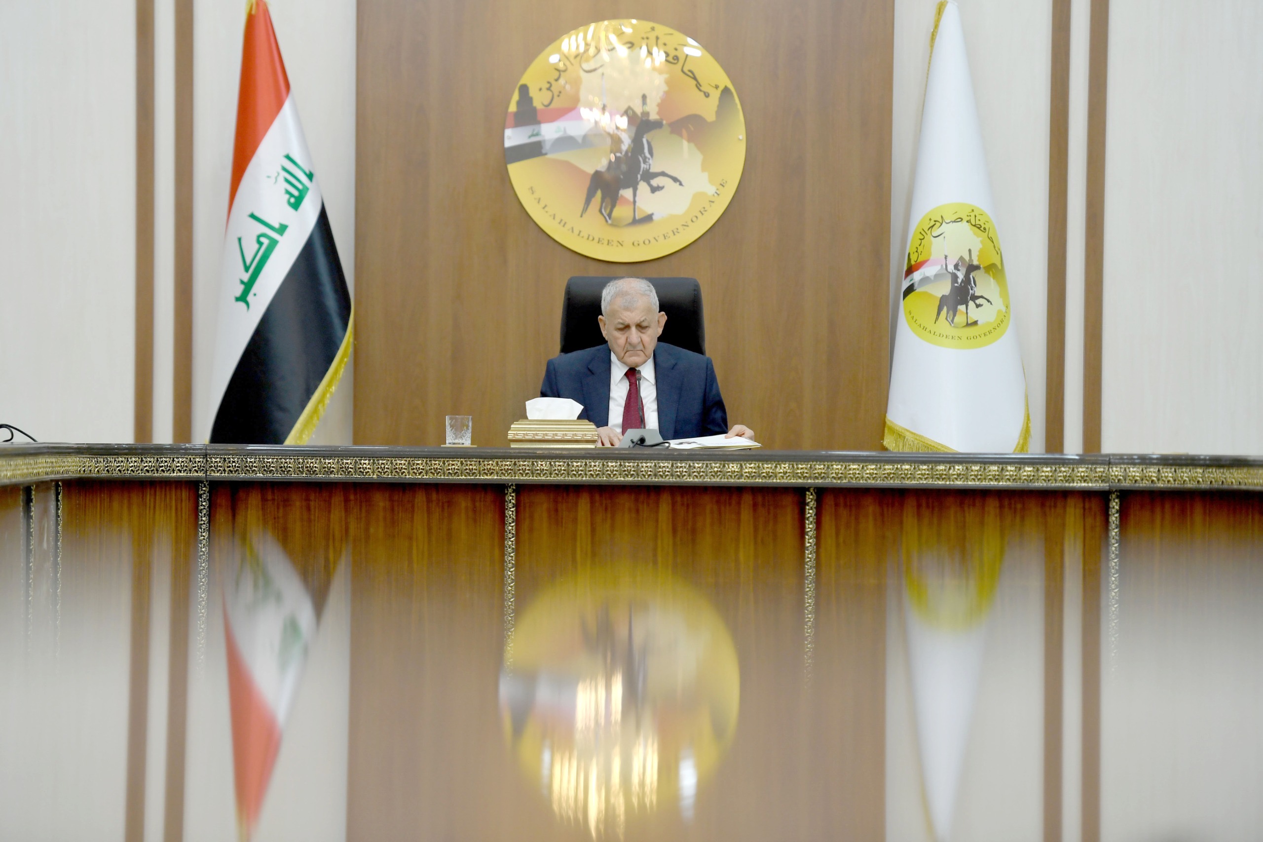 وقال بيان للمكتب الإعلامي لرئيس الجمهورية تلقى المسرى نسخه منه ،ان رئيس الجمهورية عبد اللطيف جمال رشيد زار اليوم مبنى محافظة صلاح الدين حيث التقى بمحافظها بدر محمود الفحل ورئيس مجلسها عادل الصميدعي و أعضاء مجلس المحافظة والقيادات الأمنية فيها.