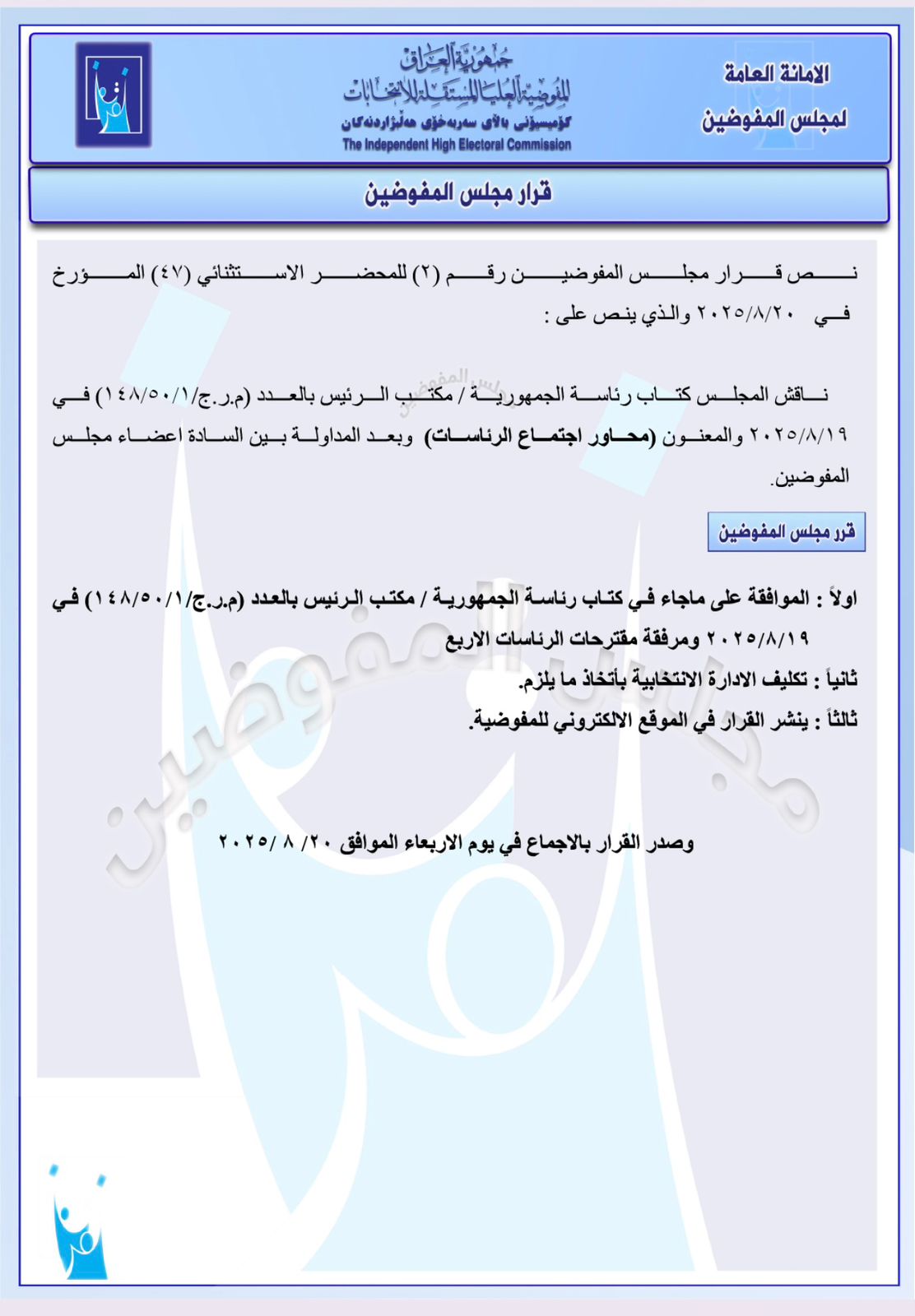وأضافت المفوضية، أنه “تمت المصادقة خلال اجتماع المجلس يوم 20 -8-2025”.