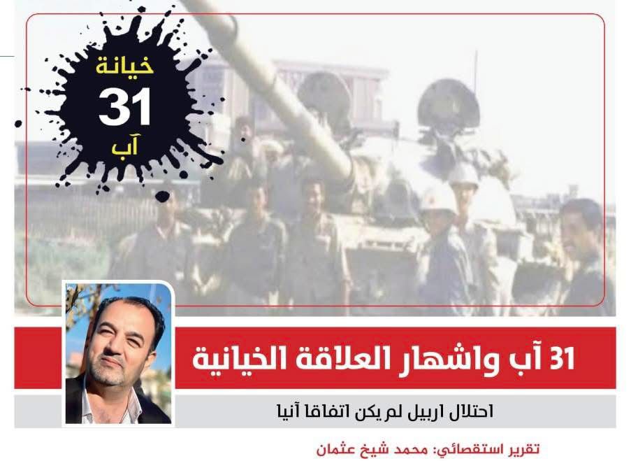 يمثل تاريخ 31/اب/1996 يوما لاشهار العلاقة الخيانية بين قيادة البارتي والنظام البعثي البائد عبر مهاجمة اربيل فقد توجهت قطعات الحرس الجمهوري بموجب أمر القيادة العامة للقوات المسلحة العراقية من معسكراتها في كركوك و تكريت و الموصل وقد انسحب الاتحاد الوطني في أربيل بعد مقاومة باسلة !! وقرأ المذيع العراقي الشهير بشواربه الكثة ( مقداد مراد ) في يوم في يوم 31/ آب/ 1996 بيان الإنتصار في عملية ( آب المتوكل على الله )!! بقوله:الله أكبر.. الله أكبر.. لترقص أزهار النرجس في أربيل لتعانق سعف النخيل في البصرة )…!