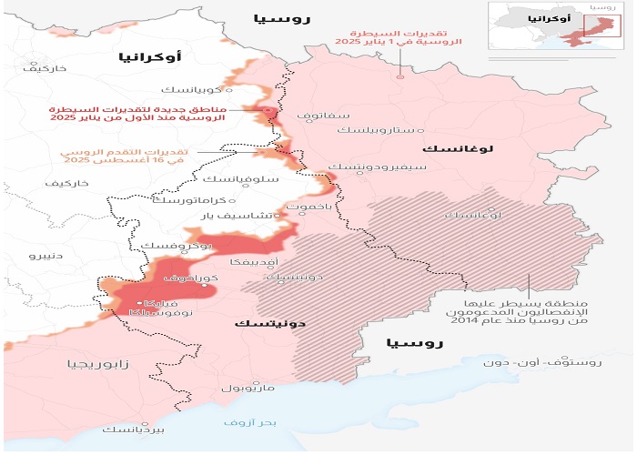 كشفت روسيا، اليوم الإثنين1/9/2025،عن سيطرتها بشكل كامل على أراضي منطقة (دونيتسك).