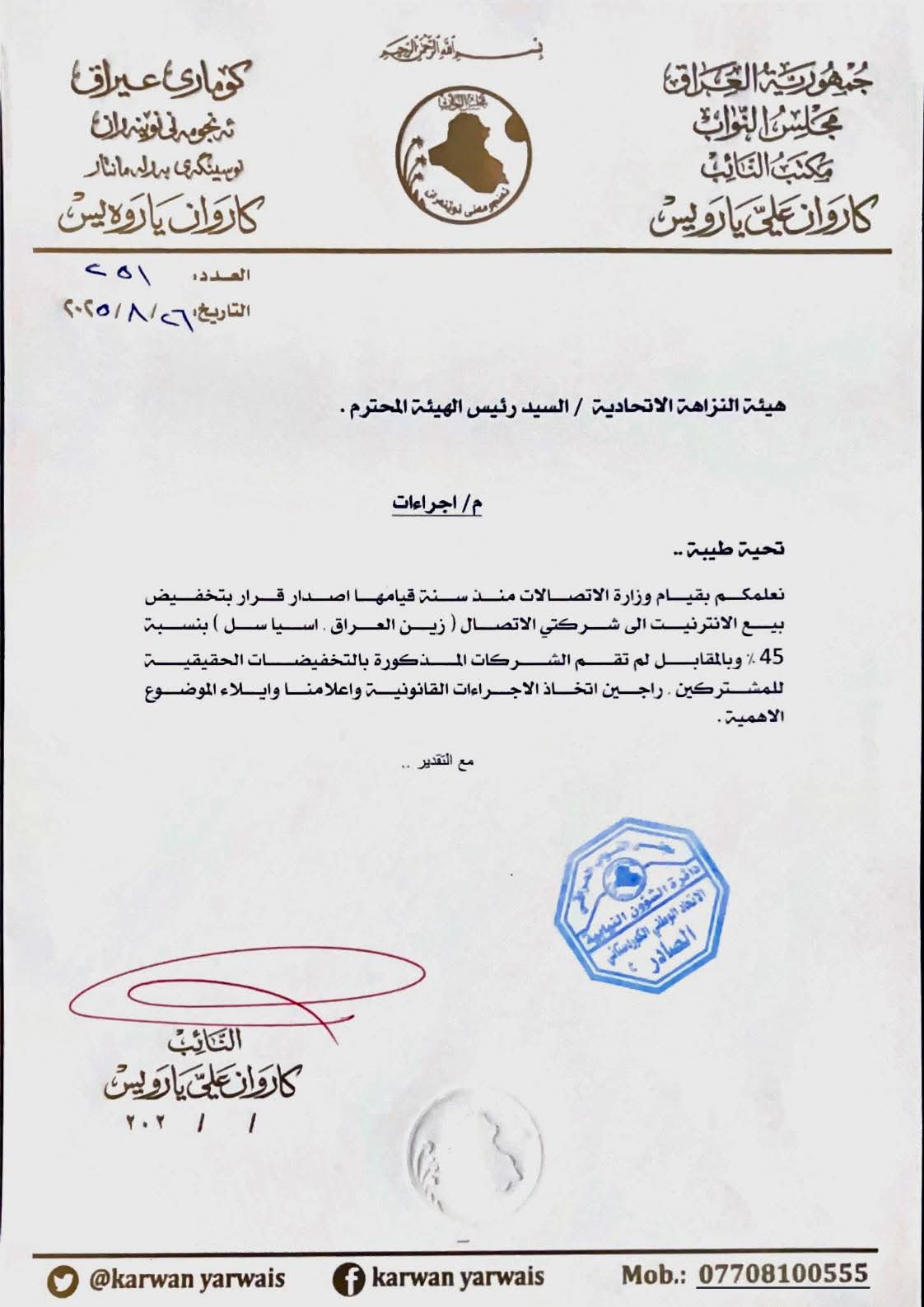 وثيقة: شكوى نيابية ضد شركتين لعدم تخفيض أسعار الإنترنيت