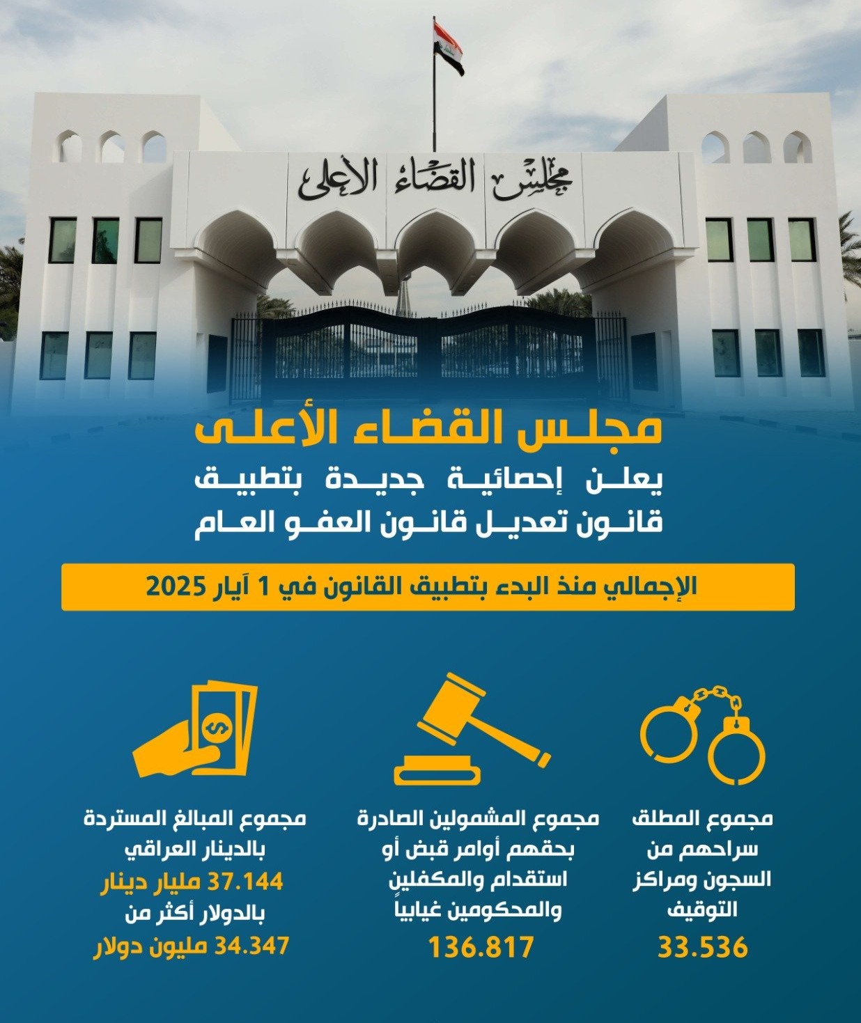 القضاء يكشف عن احصائية جديدة بتطبيق قانون تعديل قانون العفو العام