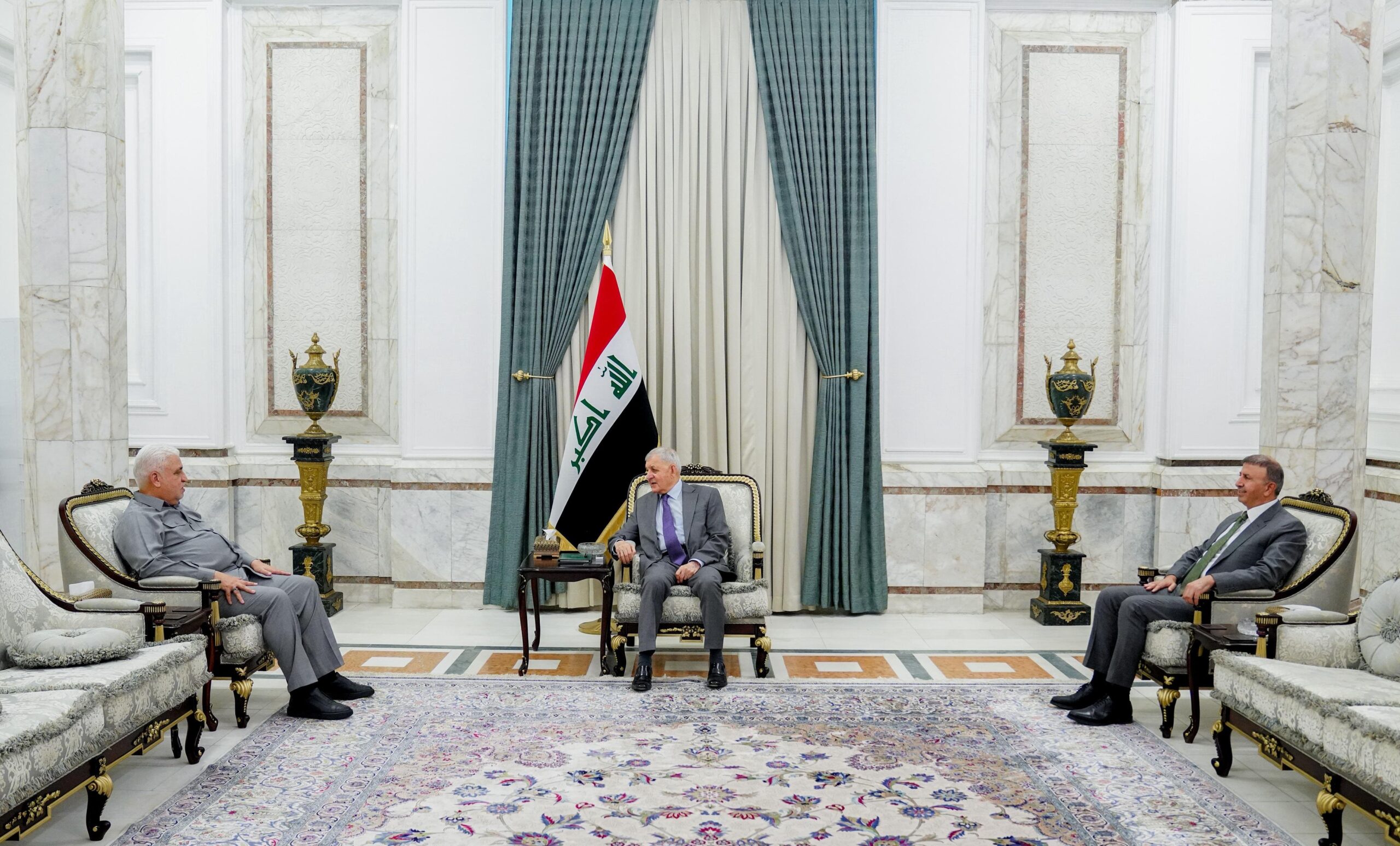 وذكر بيان صدر عن الدائرة الإعلامية لرئاسة الجمهورية، تابعه المسرى أن “رئيس الجمهورية، عبد اللطيف جمال رشيد، استقبل في قصر بغداد، رئيس هيئة الحشد الشعبي، فالح الفياض، وجرى، خلال اللقاء، استعراض الأوضاع الأمنية في البلاد والجهود المبذولة في مجال مكافحة الإرهاب ودعم المؤسسات الأمنية”.