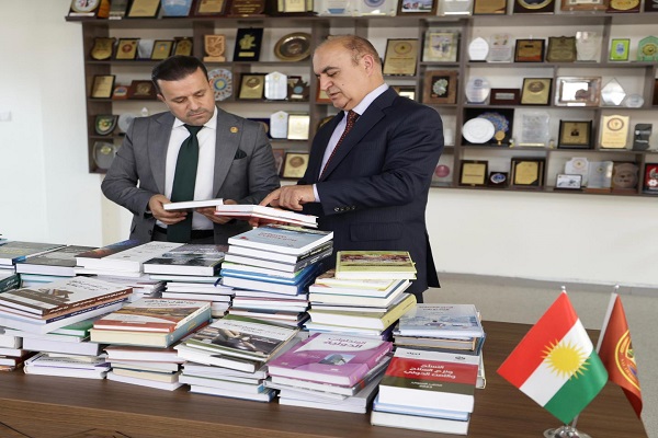 حيث قام ممثل رئيس الجمهورية محمد أمين فارس بتوزيع مجموعة من الكتب المهداة إلى جامعة صلاح الدين في محافظة أربيل، ناقلا تحيات رئيس الجمهورية إلى أساتذة وطلبة الجامعة، متمنيا لهم دوام النجاح والتوفيق في مسيرتهم الأكاديمية.