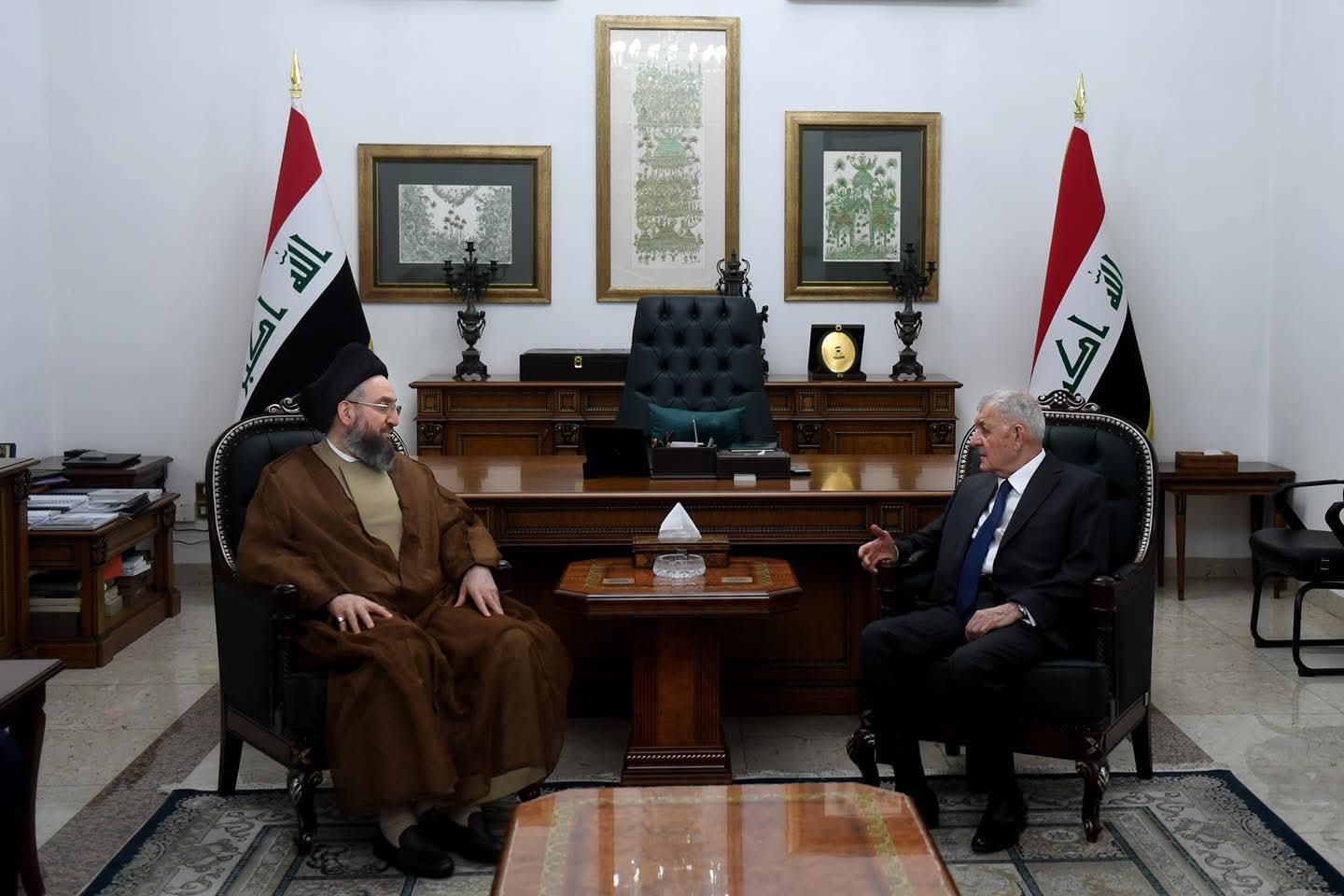 استقبل رئيس الجمهورية الدكتور عبد اللطيف جمال رشيد، اليوم الخميس 18 أيلول 2025 ببغداد، رئيس تيار الحكمة الوطني سماحة السيد عمار الحكيم، حيث جرى بحث تطورات الأوضاع على الساحتين الداخلية والإقليمية.