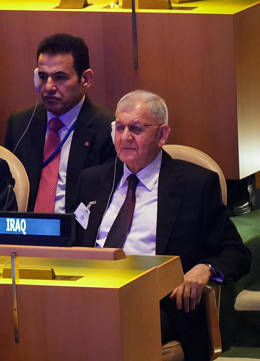 وحضر الاحتفالية من الوفد العراقي نائب رئيس مجلس الوزراء وزير الخارجية فؤاد حسين، ونائب رئيس وزراء إقليم كردستان قوباد طالباني، ومستشار الأمن القومي قاسم الأعرجي، ورئيس هيئة المستشارين والخبراء في رئاسة الجمهورية الدكتور علي الشكري، ومستشار رئيس مجلس الوزراء الدكتور خالد اليعقوبي.