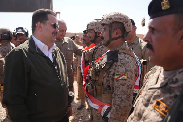 وتفقد السوداني القطعات الماسكة، ميدانياً وجوياً في مناطق وادي حوران والصكار والحسينيات والحزيمي والكعرة وعكاز، واستمع إلى شرح مفصل من القادة عن العمل المستمر في بناء خط الصد في وادي حوران والقواعد العسكرية خلال زمن الحكومة الحالية.