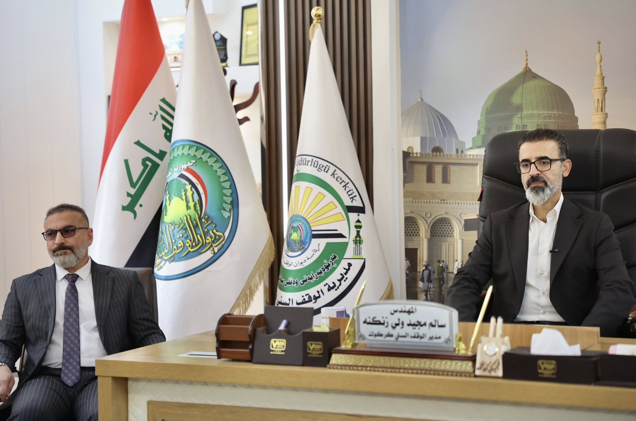 اجرى محافظ كركوك ريبوار طه، زيارة إلى مديرية الوقف السني في المحافظة في قاعة كبار العلماء.