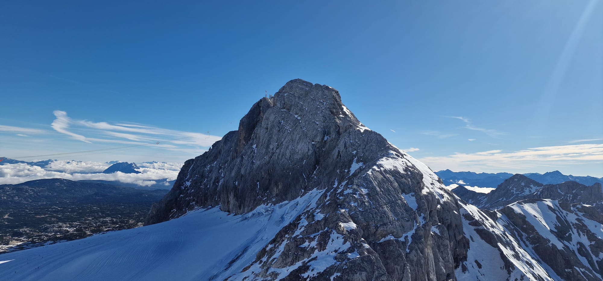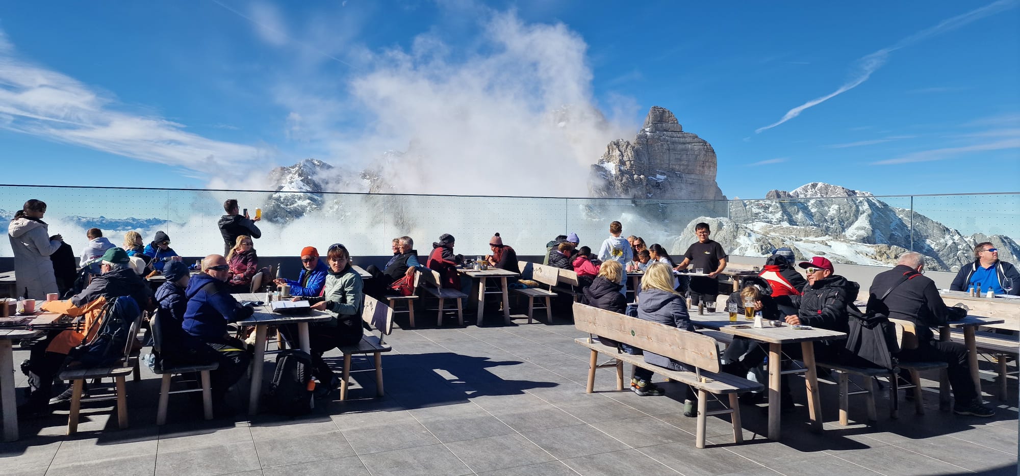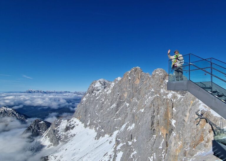 الجبل والإنسان والحيوانات حكايات لا تقهر في مهرجان أفلام الجبال وقد شاركت 44 دولة بافلامها هذا العالم ووقتها ساله كاتب المقال ان كانت دولا جديدة تشترك باعمالها هذا العام وسؤلا آخر عن سبب التركيز فقط على لجنة حكام من النمسا لتقييم الافلام الفائزة واجاب برحابة صدر على اسئلة الكاتب وتحدث عن جوائز المهرجان وبعدها انطلقنا لنشاهد جبل داخشتاين وسلالم صوب السماء في جو مشمس بالرغم بأن كثافة الضيوف لم يفسح المجال للتمتع كثيرا بالجبال. فحيث هناك القصر الجليدي، ودعنا الجبل للعودة إلى مدينة جراتس النمساوية ولكن يظل الجبل ورهبته في القلب والفكر وخالدا في الذاكرة! داخشتاين قصيدة لم تكتب بعد!!