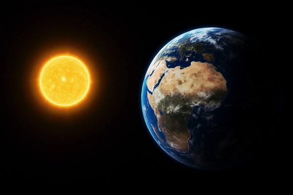 السر لا يكمن في غياب الضوء، بل في غياب الوسط الذي يُظهره للعين.فأشعة الشمس تنتشر في جميع الاتجاهات، غير أنّ الفضاء لا يحتوي على غلافٍ جويٍّ مثل الأرض. على كوكبنا، يقوم الغلاف الجوي بتبعثر ضوء الشمس في كل الاتجاهات، ولهذا تبدو السماء مضيئة باللون الأزرق خلال النهار.