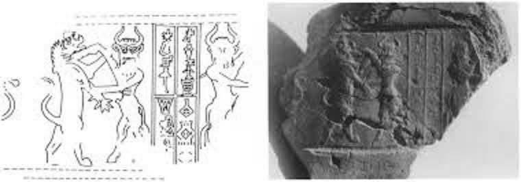 وفي ساحة الاحتفالات عثر على تمثال لثور جاثم له رأس إنسان وقد بينت الرقم المسمارية أن هذا التمثال كان رمزاً تعبيرياً للمتعبد في ساحة الإله “شمش” الذي خصص له هذا المعبد في القرن الثالث عشر قبل الميلاد.
