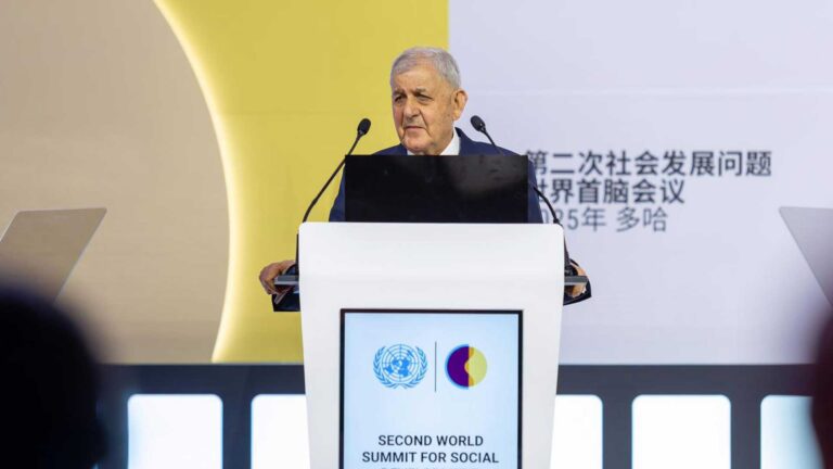 وأوضح رشيد في مؤتمر القمة العالمي الثاني للتنمية الاجتماعية المنعقد في العاصمة القطرية الدوحة :”نتطلع لعالم أكثر أمناً وسلاماً فالعدالة الاجتماعية ضرورية لتحقيق تكافل الفرص”.