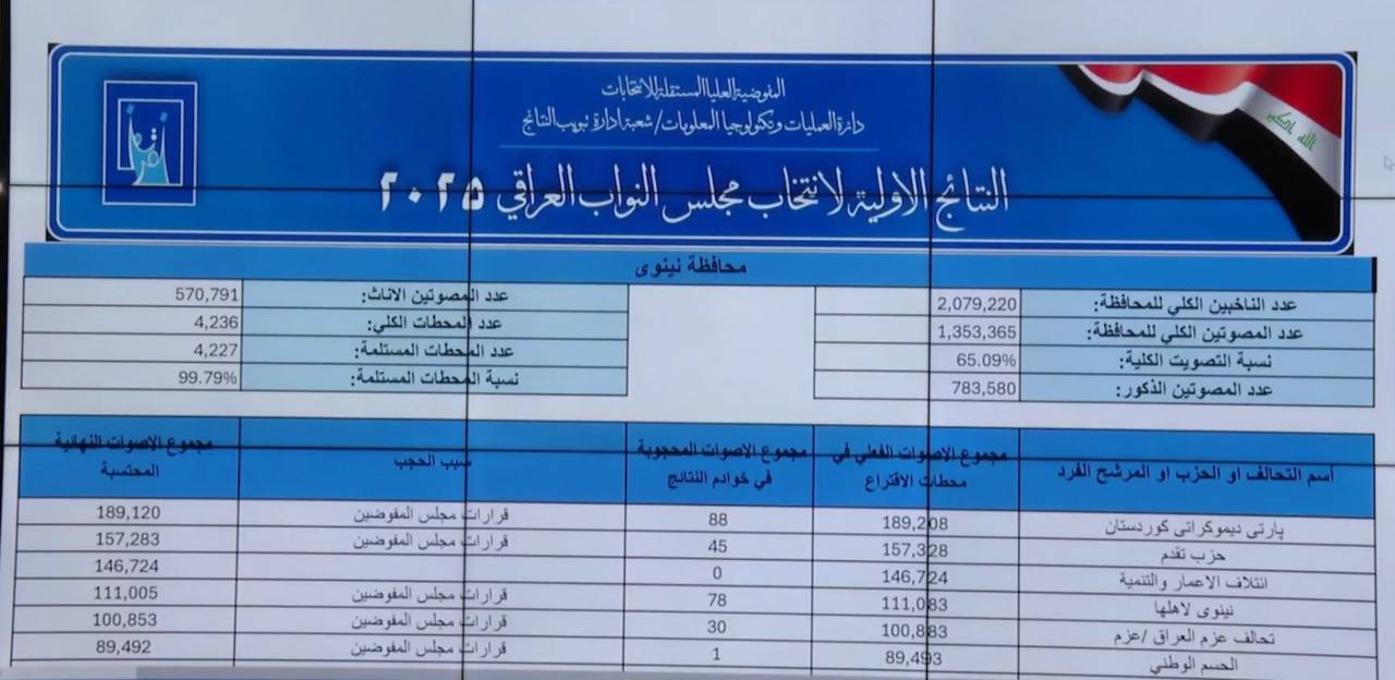قائمة الجماهير الوطنية في صلاح الدين المنضوي فيها مرشح الاتحاد الوطني ينال المرتبة الرابعة12/11/2025 - 9:11 م