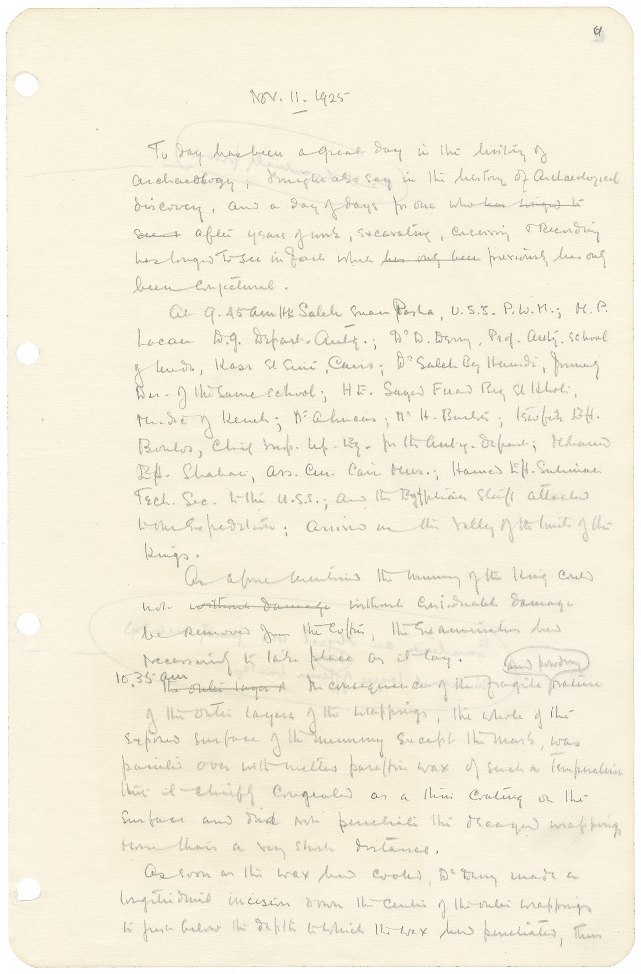 سجل هوارد كارتر اللحظة في مجلته على أنها “يوم عظيم في تاريخ الآثار. “في الساعة 9:45 صباحاً، اجتمع الفريق في وادي الملوك، استعداداً للكشف عن ما كان مخبئاً لأكثر من ثلاثة آلاف سنة.