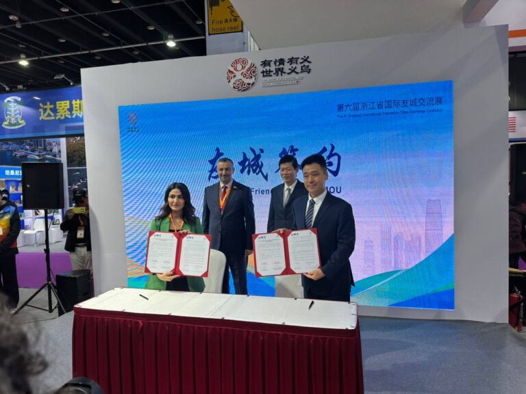 وقالت في بيان تلقى المسرى نسخة منه إن “العضو في المجلس الإداري لغرفة تجارة وصناعة السليمانية آرام بابان، شاركت، اليوم، رفقة محافظ السليمانية هفال أبو بكر في معرض المنتجات الثقافية والصناعية لمدينة ييوو في جمهورية الصين الشعبية، وشهدوا توقيع اتفاقية المدن الشقيقة بين محافظة السليمانية ومدينة ييوو”.