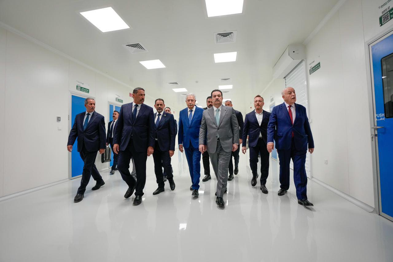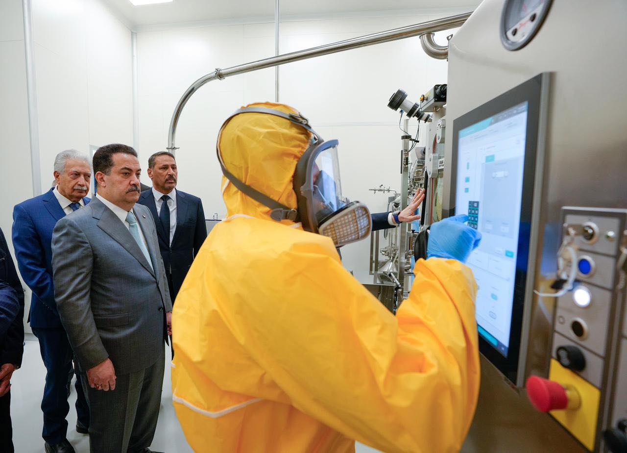 افتتح رئيس مجلس الوزراء السيد محمد شياع السوداني، اليوم السبت29-تشرين الثاني-2025، مصنع الأدوية السرطانية بكلفة (45) مليون دولار، في الشركة الحديثة للصناعات الدوائية، إحدى مشاريع القطاع الخاص، كما أطلق الأعمال التنفيذية لمشروع انتاج اللقاحات الفيروسية لأمراض (الكبد الفيروسي، والإنفلونزا، واللقاح الثلاثي؛ لقاح النكاف وشلل الأطفال والحصبة الألمانية) بكلفة (70) مليون دولار.