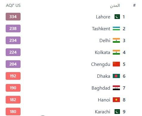 تحتل العاصمة بغداد المرتبة السابعة عالمياً في قائمة المدن الأكثر تلوثاً، وفقاً لتقرير مؤشر جودة الهواء العالمي.