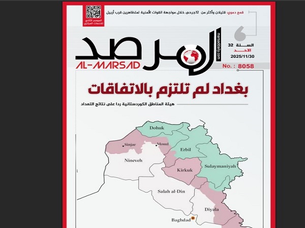 أصدر مركز الرصد والمتابعة في بورد إعلام الاتحاد الوطني الكوردستاني العدد رقم (8058) من مجلة المرصد ليوم الأحد 30/11/2025.