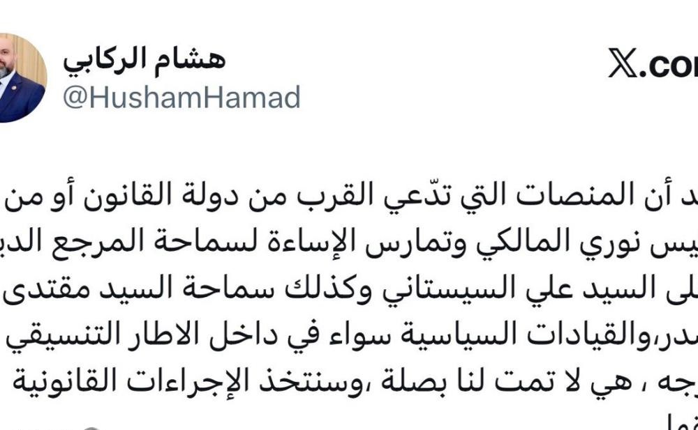 “المنصات التي تدّعي القرب من دولة القانون أو من المالكي وتمارس الإساءة هي لا تمت لهم بصلة”، هذا ما قاله مدير المكتب الإعلامي هشام الركابي، مضيفاً أنهم سيتخذون الإجراءات القانونية بحق هذه المنصات.
