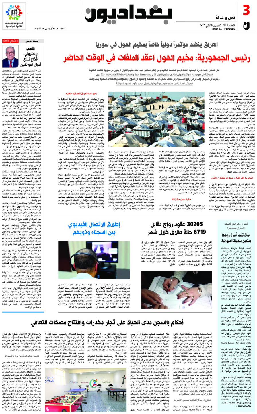 نشرت صحيفة بغداديون في عدد ها (74) لشهر تشرين الثاني تقريرا صحفيا بعنوان (رئيس الجمهورية: مخيم الهول.. أعقد الملفات في الوقت الحاضر.. العراق ينظم مؤتمرا دوليا خاصا بمخيم الهول في سوريا) الذي تناولت فيه تنظيم العراق مؤتمرا دوليا لإعادة الأشخاص من مخيم الهول والمخيمات المحيطة وأماكن الاحتجاز وذلك على هامش اجتماعات الجمعية العامة للأمم المتحدة في نيويورك.