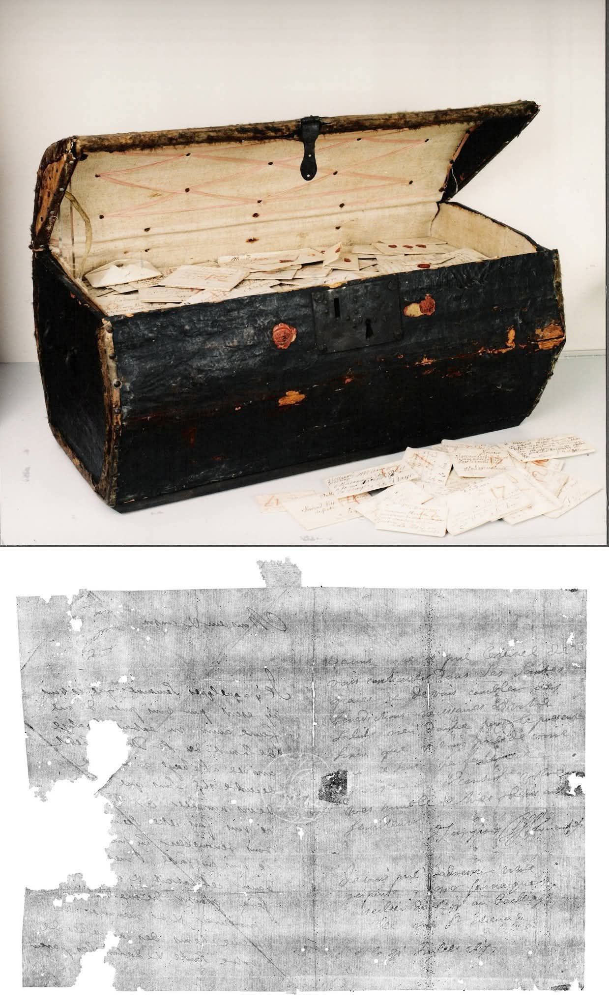 شاركها فيسبوك تويتر لينكدإن بينتيريست البريد الإلكتروني في عام 2012 تم إعادة اكتشاف صندوق مدير البريد الذي يحتوي على 2600 رسالة غير مسلمة أرسلت من جميع أنحاء أوروبا إلى لاهاي بين 1689-1706. في متحف في هولندا. 600 من هذه الرسائل لا تزال غير مفتوحة، والآن يستخدم فريق من العلماء الأشعة السينية لكشفها عمليا.