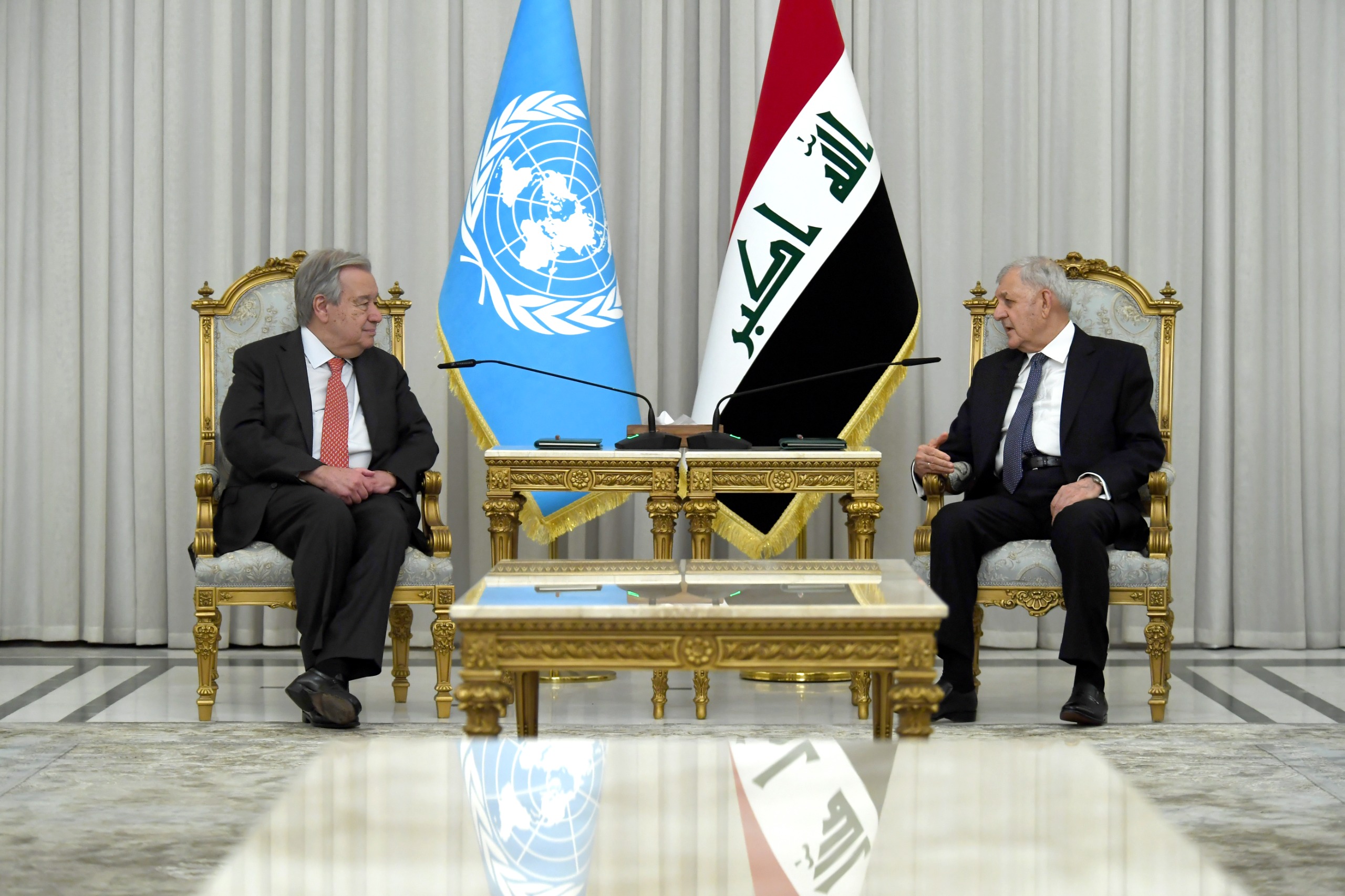 وفي مستهل اللقاء ثمن رئيس الجمهورية الدور البارز الذي اضطلع به غوتيريش في دعم العراق ومساندته خلال مختلف المراحل، وحرصه المستمر على تعزيز التعاون بين العراق والمنظمة الدولية.