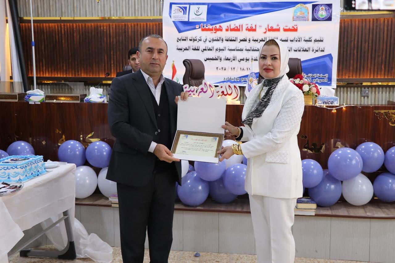 في إطار الاحتفاء باليوم العالمي للغة العربية، أقام قسم اللغة العربية في كلية الآداب بجامعة كركوك، بالتعاون مع قصر الثقافة والفنون في كركوك واتحاد أدباء وكتاب كركوك، مهرجاناً ثقافياً فنياً استمر على مدى يومين، حمل عنوان (لغة الضاد هويتنا).