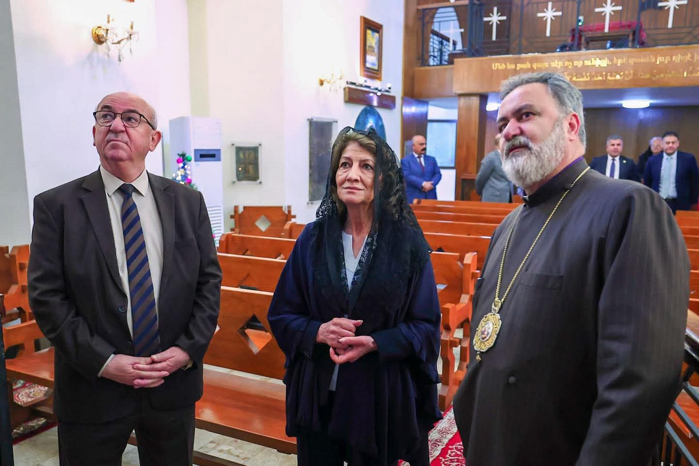 زارت السيدة الأولى شاناز إبراهيم أحمد، الثلاثاء، الكنيسة الأرمنية الأرثوذكسية للقديسة مريم العذراء في منطقة الميدان ببغداد.