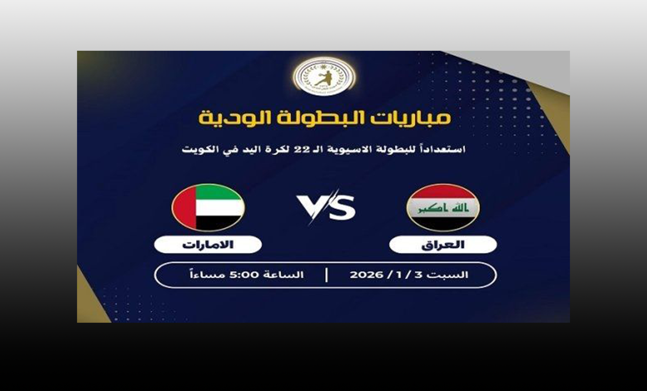 يخوض منتخبنا الوطني لكرة اليد أولى مبارياته في البطولة الودية المقامة في سلطنة عُمان، عندما يواجه المنتخب الإماراتي في الساعة الخامسة من مساء اليوم السبت.