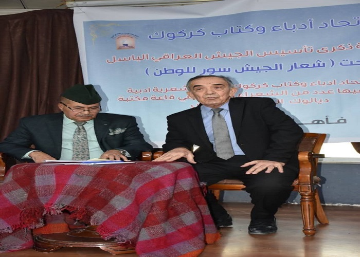 احتفاءً بالذكرى الخامسة بعد المائة لتأسيس الجيش العراقي الباسل، نظم اتحاد الأدباء والكتّاب في العراق / فرع كركوك، جلسة شعرية وطنية، بحضور جمع من الأدباء والشعراء والمثقفين، في مناسبة جسدت عمق العلاقة بين المؤسسة الثقافية والمؤسسة العسكرية، والدور المشترك في ترسيخ قيم الانتماء الوطني.