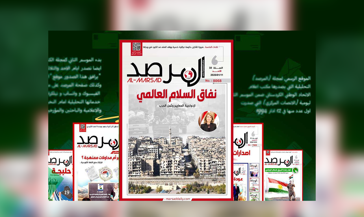 أصدر مركز الرصد والمتابعة في بورد إعلام الاتحاد الوطني الكوردستاني العدد رقم (8068) من مجلة المرصد، ليوم الأحد 11/1/2026.