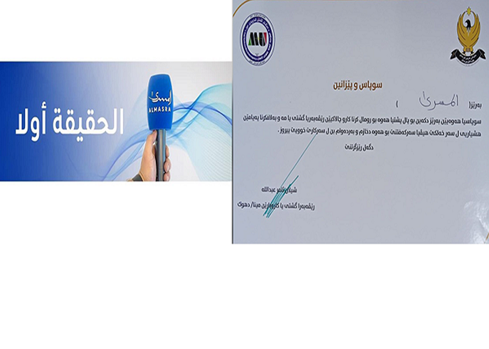 قيمت المؤسسة العامة لشؤون الالغاء عاليا دور قناة المسرى في تغطية نشاطاتها الخاصة بازالة اللغام والمخلفات الحربية بمحافظة دهوك.