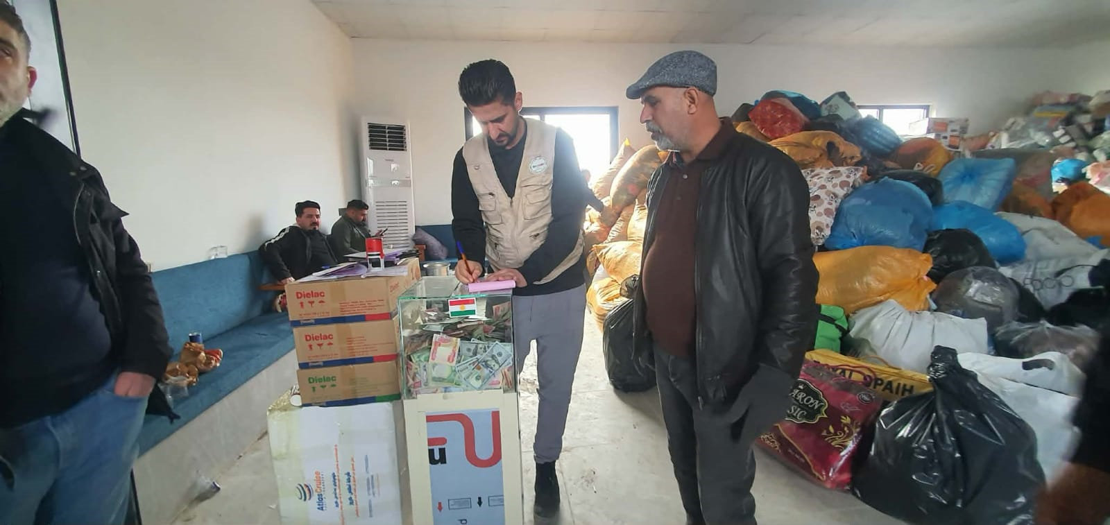 وتستلم المساعدات حاليا في قاعتي شورجة وكاكەڕەش بمدینة كركوك، بإشراف مباشر من اللجان المنظمة للحملة، التي تعمل على تنظيم وتنسيق عملية الاستلام بشكل مستمر.